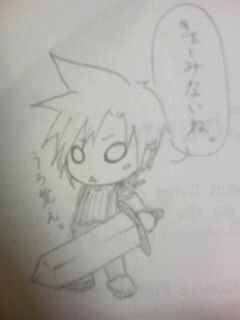 私の中で何かストッパー的かものが一瞬スポーンッとすっ飛んだんです。 そしてその一瞬の間で投稿してしまった故です。(やるな、自分←) でも脱がせたい気持ちは未だ継続中。 (一瞬じゃねェェ!!) 昼間っぱらから現実逃避症候群な凛ですこんにちは! 大丈夫です、凛の頭は正常に機能しています。 決めた。今週末リボ様脱がす。(!?) リボ様って、絶対色白で無駄のない体をお持ちだと思うんだ。 色白だから髪とか目の漆黒がなおさら映えるんだと思うんだ。 だから総受で良いと思うんだ。(くわっ) そりゃ周囲の男共はムラムラするよ仕方ないよ生物の本能刺激してんだからあの色気! 自分落ち着けorz こないだ香さんとFFトークしたから、なんかクラウド描きたくなった! という落書き添付。(はい講義中作成です) 昔(4年前くらい?)よくクラウド描いてたんですが、もうあんま覚えてませんでした← こんな感じ…だったかな…。 あ、ちなみに私、FF7は「鬱と変態しかいないゲーム」と認識しております。 絶対間違ってないよ…!! あの最終形態軟体生物男の発言は最初から最後まで一般向けRPGとは思えない(にこっ) 最近このデフォがお気に入りです。 ちょいちょいって描けると楽ですね! |