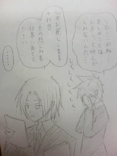 アヤラギさーん!反応遅くてすみません!ありがとうございますしっかりちゃっかり見ましたアヤラギさんのプチハーレムと漫画!!も…萌え…萌えました……ぶはっ!!!!(鼻血拭いて!) まさか本当に描いて下さるなんて!!!言ってみるものだと実感しました!!!! というわけで、スパナさんとリボンさん番外。 ツナはリボンにフラれてメソメソして色んな人に嘆けばいいよ。 でもちゃんと人の話聞いてくれる人が基本的にボンゴレにいません。唯一親身になってくれる獄寺さんは最近十代目があまりにも仕事サボるから簡単に甘やかしてくれなくなりました。十代目の扱いが上手になりました。成長したね。 で、最終的に骸さんのとこ行きます。彼実はいい人だから迷惑と言いながら話聞いてあげて、結果十代目に懐かれて面倒事にガンガン巻き込まれたらいい。 ということがスパナさんとリボンさんの周囲で起こったら楽しいなー。すべての原因はこいつら。 まったく、楽しい奴らだ。